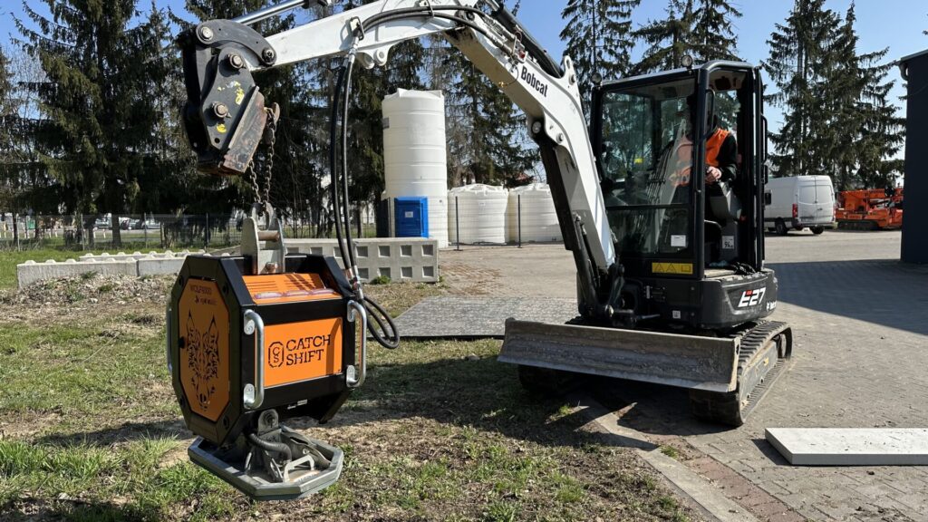 WOLF4000 HYDRAULIC może być wyposażony w adapter kompatybilny ze złączem obrotowym Kinshofer, które umożliwia hydrauliczne obracanie podniesionego elementu bezpośrednio z kabiny operatora. To rozwiązanie znacząco zwiększa precyzję montażu i bezpieczeństwo pracy – pozwala idealnie dopasować pozycję prefabrykatu bez potrzeby ręcznego korygowania jego ustawienia. System Kinshofer jest powszechnie stosowany w żurawiach HDS oraz koparkach, dlatego integracja z podnośnikiem WOLF4000 HYDRAULIC przebiega szybko i bezproblemowo.